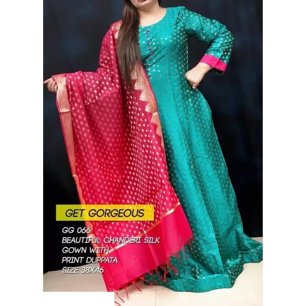 Name : Beautiful silk chanderi gown with eautiful duppata