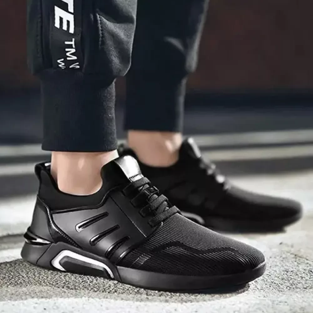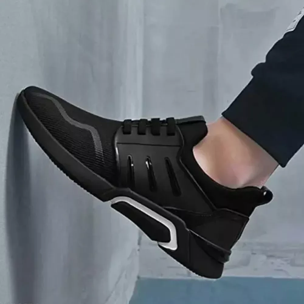 Dive into the world of effortless style with the Men's Black Casual Shoes. These shoes are the epitome of modern comfort and sleek design, featuring a lightweight mesh material that provides excellent breathability and comfort. The sturdy rubber sole ensures long-lasting wear and superior traction, making them ideal for any urban adventure. With a classic lace-up fastening and a refined back detail, these shoes offer both a secure fit and a touch of elegance. Perfect for the fashion-forward man, these black casual shoes are a versatile addition to any wardrobe.