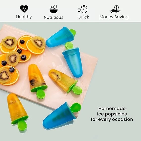6 Pcs Homemade Reusable Ice Cream Moulds Tray Green Blue
