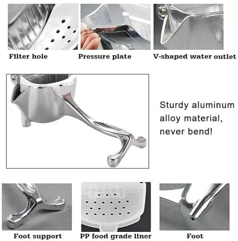 Constructed from high-quality aluminum and stainless steel materials, this manual hand juicer is built to last. Its durable construction ensures long-lasting performance, making it a reliable companion for all your juicing adventures.