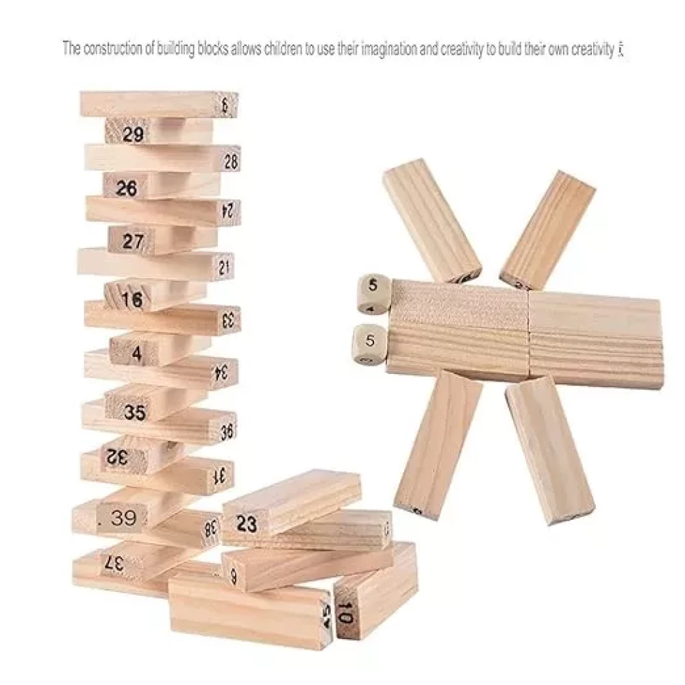 Players of all ages will delight in the challenge of carefully selecting and removing blocks, all while honing their fine motor skills, spatial awareness, and strategic thinking abilities Whether you're a seasoned tower-building pro or new to the game, this Wooden Blocks Dice Building Blocks Game promises hours of fun-filled entertainment and educational value. So gather your friends and family, roll the dice, and embark on an unforgettable journey of skillful stacking and tumbling excitement!