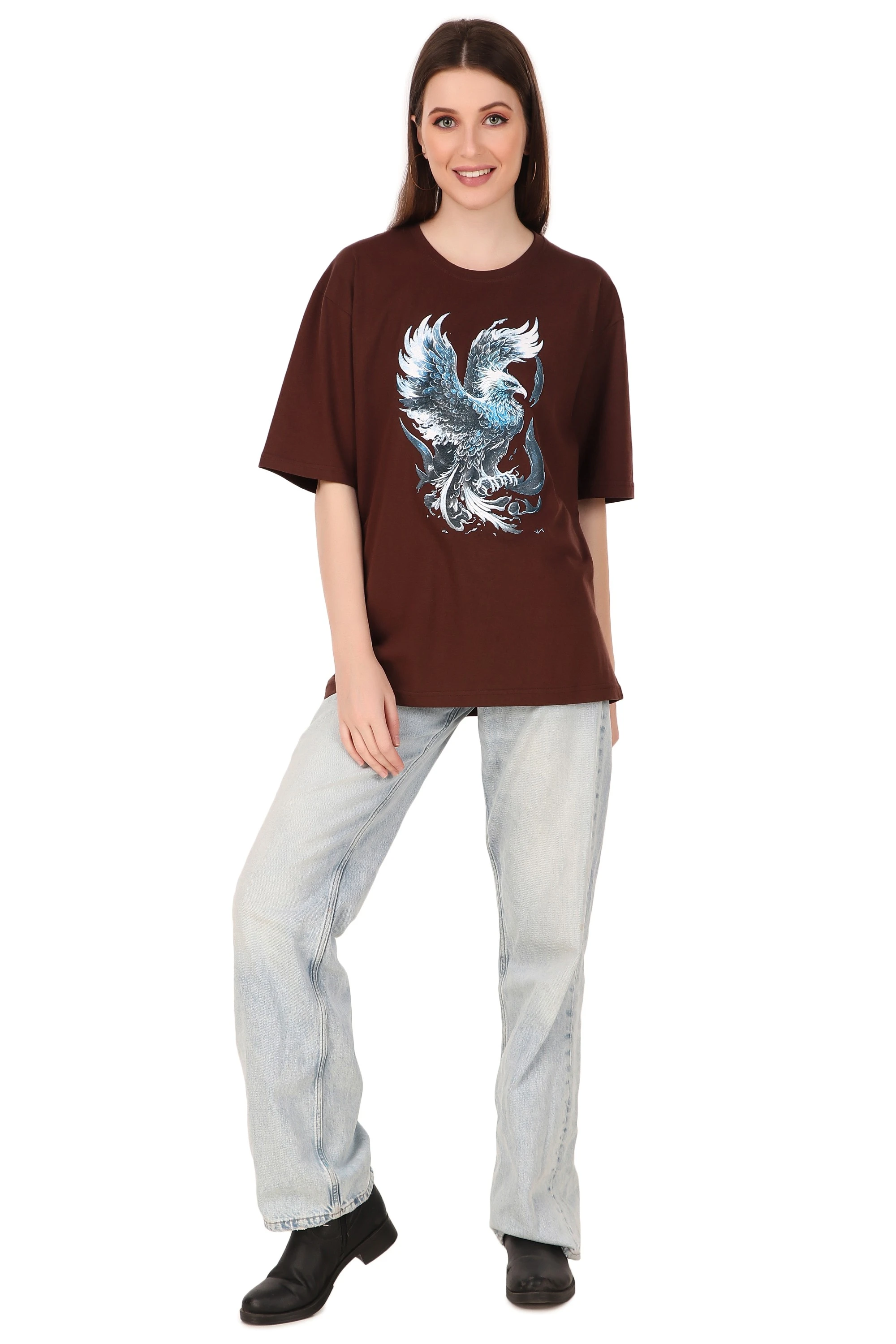 PUFF PRINTED OVERSIZED EAGLE T SHIRT FOR WOMEN Brown