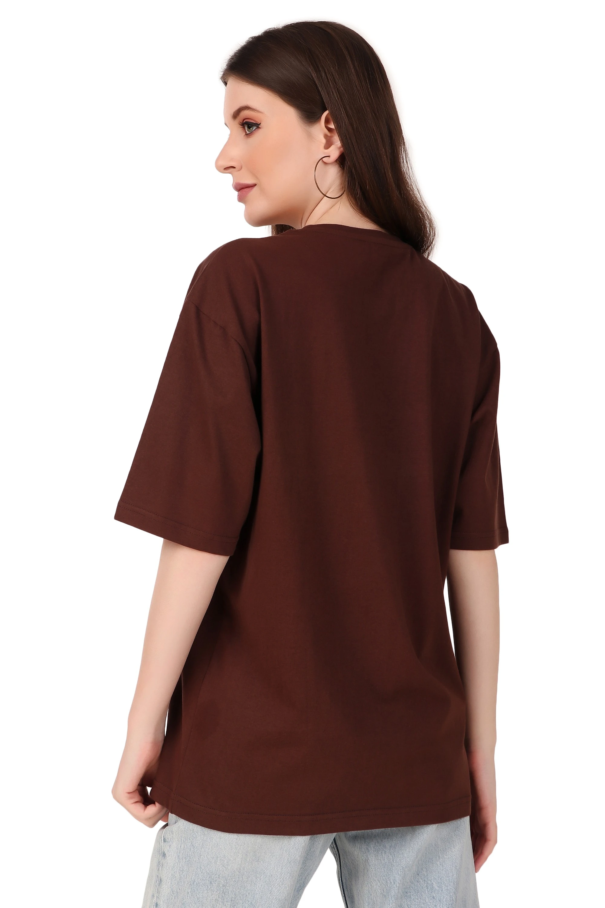 Modern Women's Cotton Blend T-shirt Material: Cotton Blend Sleeve Style: Short Sleeves Colour:Brown Design: Printed Quantity: 1 piece Neckline: Round Neck Fit: Oversized
