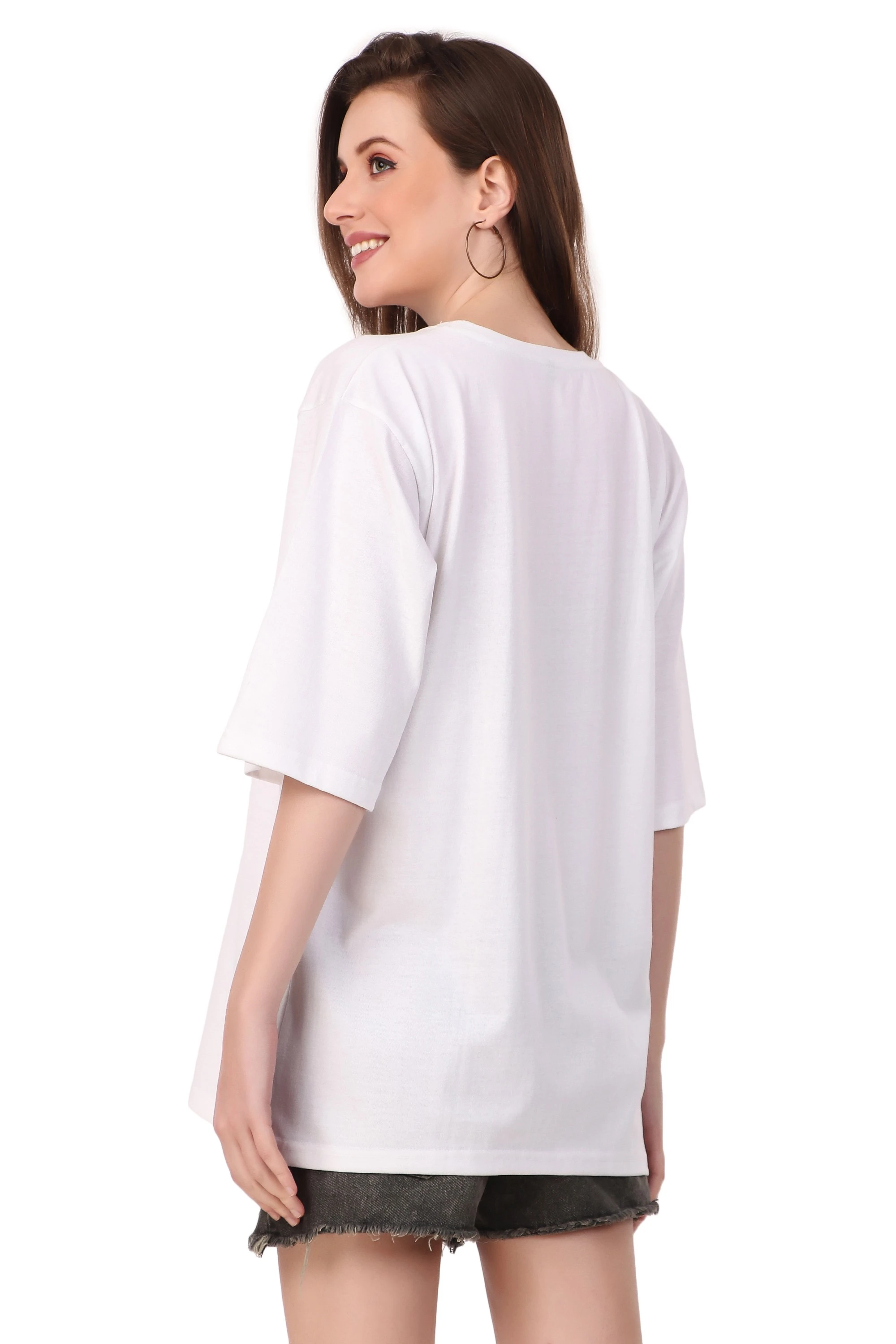 Designed for the modern woman, this T-shirt boasts short sleeves that strike the perfect balance between casual ease and fashion-forward style. The oversized fit adds an extra layer of comfort, allowing for a relaxed and effortlessly cool look. Embrace the trend while reveling in the easygoing silhouette that makes a statement without compromising on comfort.