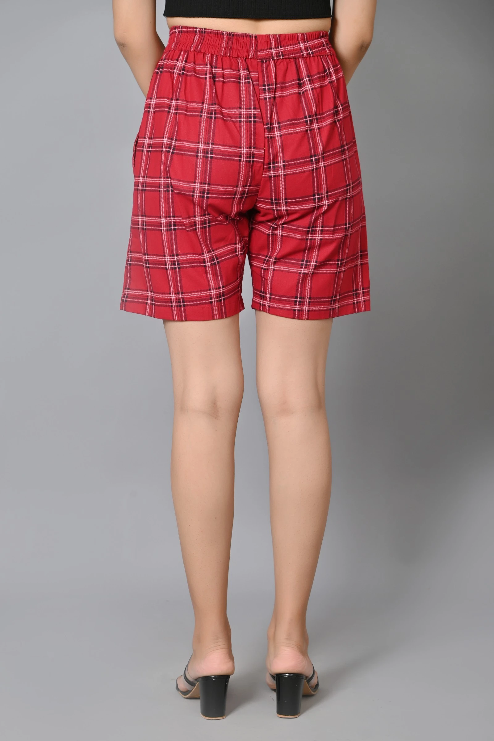 Upgrade Your Casual Wardrobe with Red Checkered Cotton Blend Shorts