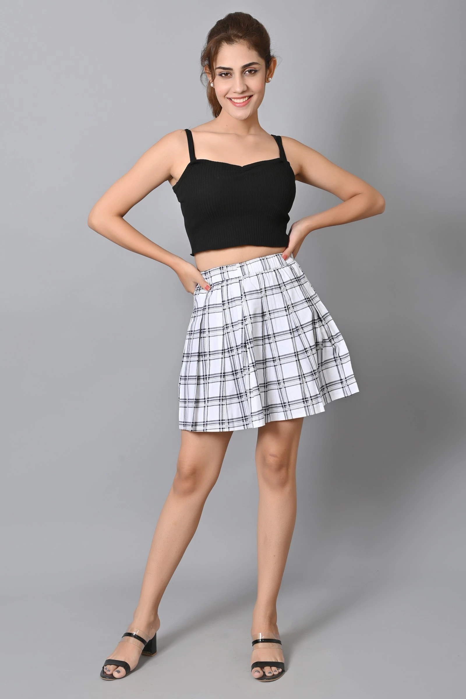 • Other Details: Cotton Checkered Skirt, Elastic Waistband