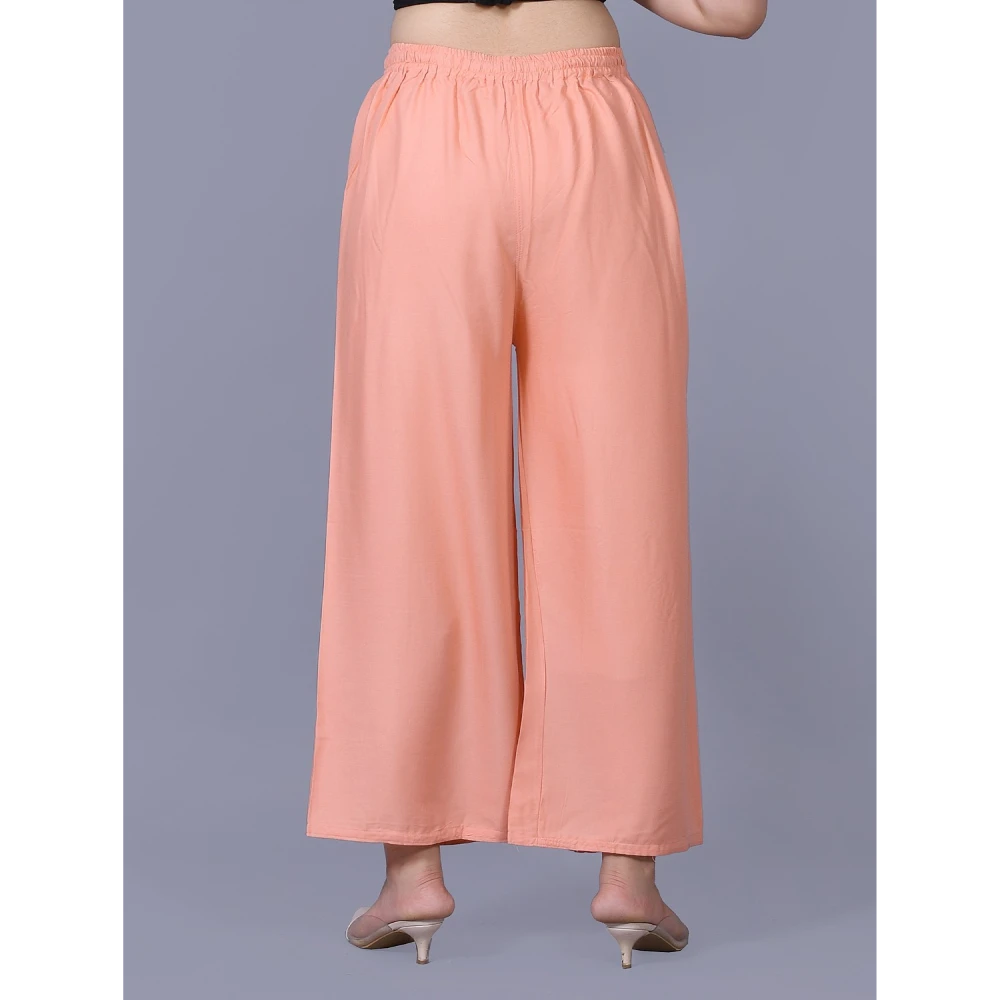 Women Flared Peach Viscose Rayon Trousers