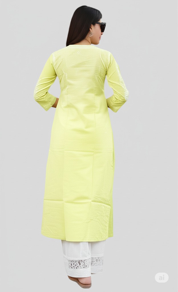 premium lemon yellow chikankari cotton kurti exquisite ethnic wear for women perfect for office casual outings and festive occasions