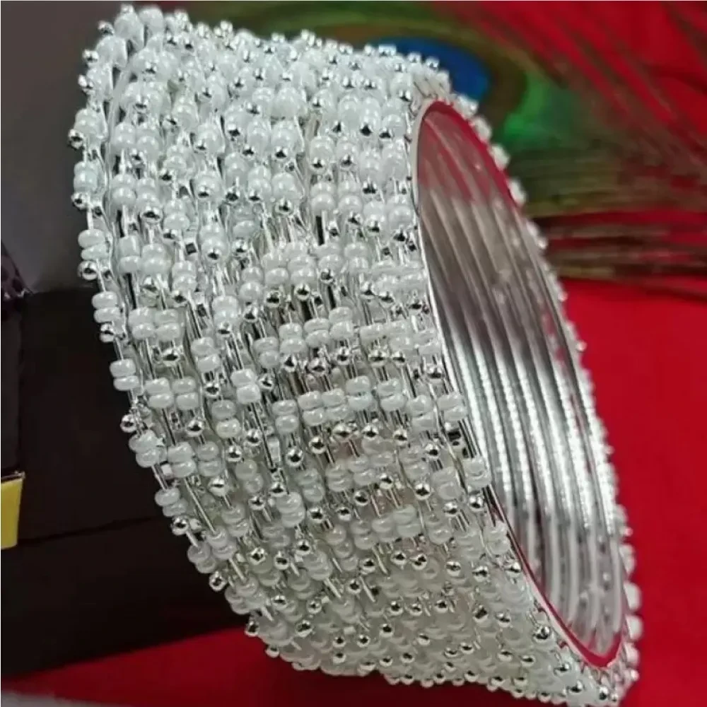Enhance your jewelry collection with the Alloy Beads Bangle Set. Crafted from high-quality alloy, these bangles feature a pristine white color that adds a touch of elegance to any outfit. Adorned with delicate beads, they offer a sophisticated and timeless appeal.
