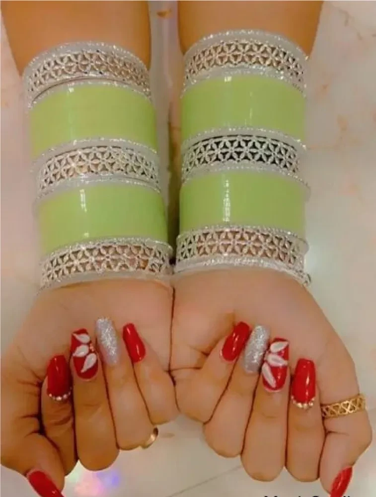 Perfect for weddings, festivals, and special occasions, they add a vibrant and refined touch to any outfit. Embrace the blend of traditional charm and contemporary elegance with this exquisite set of green chudas, a versatile addition to your jewelry collection.