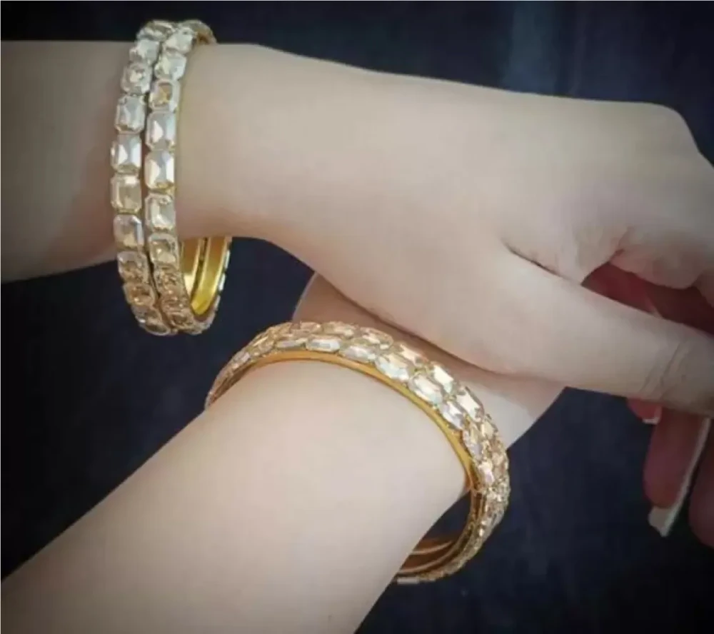Perfect for special occasions or adding a touch of glamour to your everyday look, this gold glass kada is a stunning addition to any jewelry collection. Embrace the refined beauty and elegance of this exceptional piece and elevate your style effortlessly.