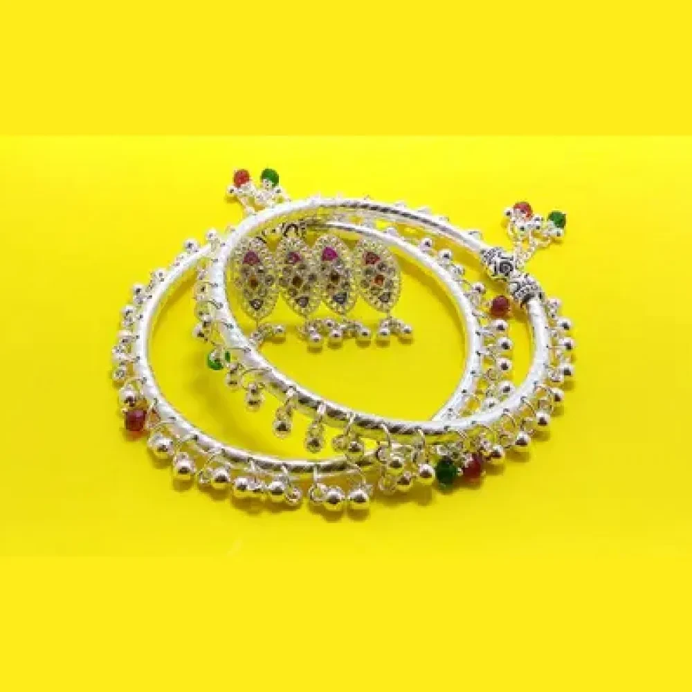 Introducing our Alloy New Payal and Bichiya set, a perfect blend of elegance and tradition. Crafted from high-quality alloy and adorned with silver plating, this set exudes timeless beauty. Featuring beautiful agate stones, the design adds a touch of sophistication and charm. The adjustable sizing ensures a comfortable fit, making it perfect for any occasion. This set includes a stunning anklet paired with a matching toe ring, making it a versatile addition to your jewelry collection. Elevate your look with this exquisite anklet and toe ring set.