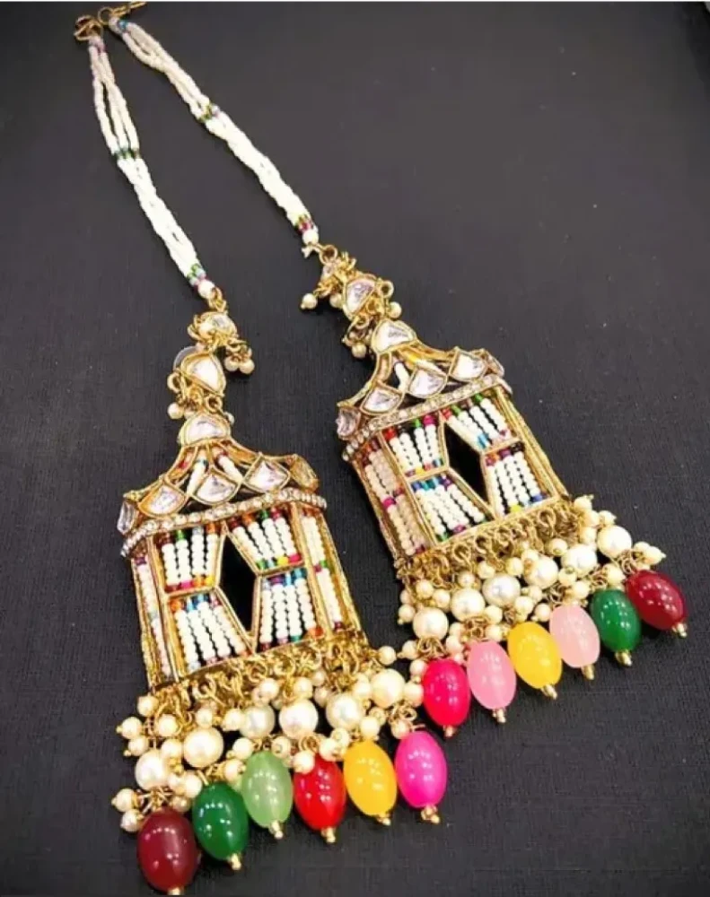 Introducing our Gold Plated Kundan Ethnic Earrings, a timeless piece that captures the essence of traditional elegance. Crafted from high-quality alloy and adorned with luxurious gold plating, these jhumkhas are a symbol of exquisite craftsmanship. Each earring is embellished with beautiful pearls, adding a touch of sophistication and grace. Designed with non-adjustable sizing for a secure and comfortable fit, these jhumkhas are perfect for any occasion. Elevate your ethnic wardrobe with these stunning earrings, a must-have addition to your jewelry collection.