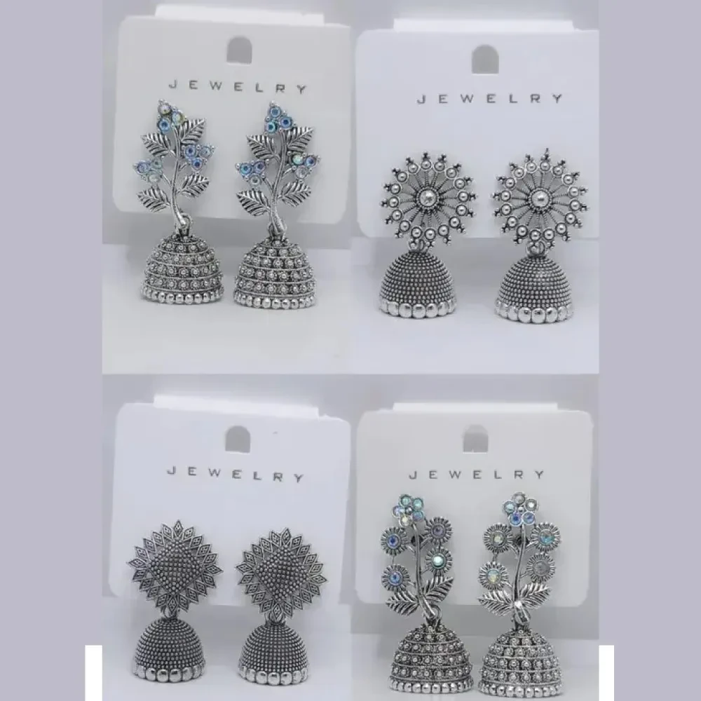 Step into the spotlight with our New Latest Earrings 4 Pcs Combo, a quartet of style that brings together the best of both worlds. Each earring in this combo is crafted from a sturdy Alloy base, providing a resilient foundation for the intricate designs. The Oxidised Silver plating offers a vintage touch, giving these earrings an elegant, aged look that is both trendy and timeless.
