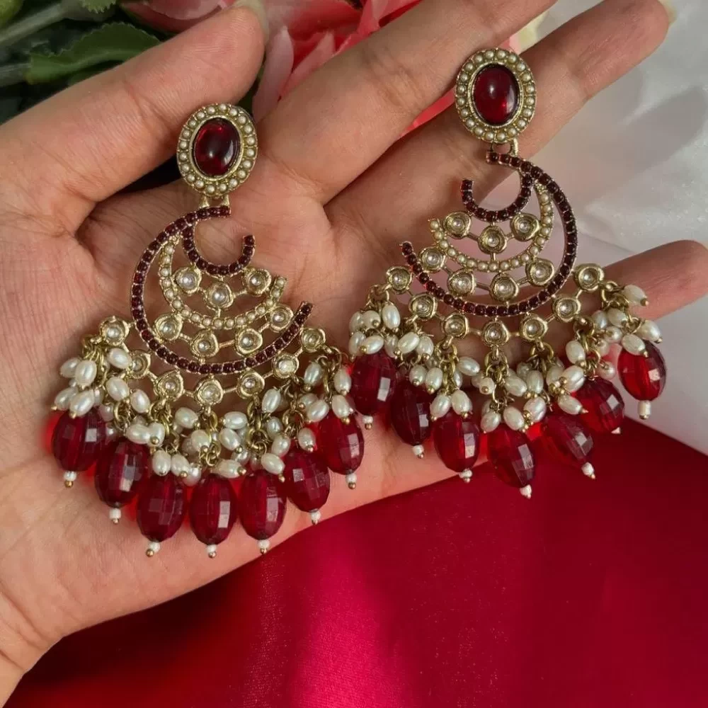 Tag: imitation jewellery women earrings women jewellery imitation red kundan alloy