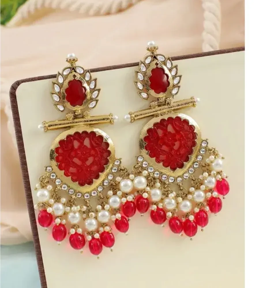 Red Pearl Chandbali Earrings for Women