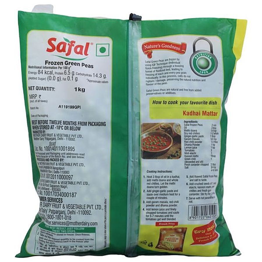 Safal Frozen Green Peas are not only known for their amazing taste, but because they are processed under hygienic conditions, you can eat them at any time of the year. The frozen peas will add a lovely taste to your peas pulao, matar paneer or aloo matar. A typical North Indian dish will be incomplete without a touch of green matar or peas.