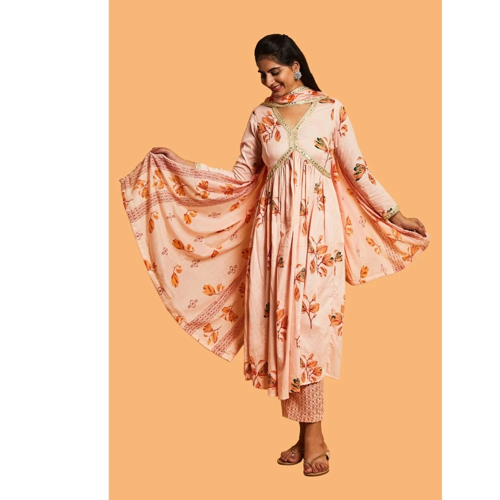 Silaye Peach and Gold Style Anarkali Suit Set