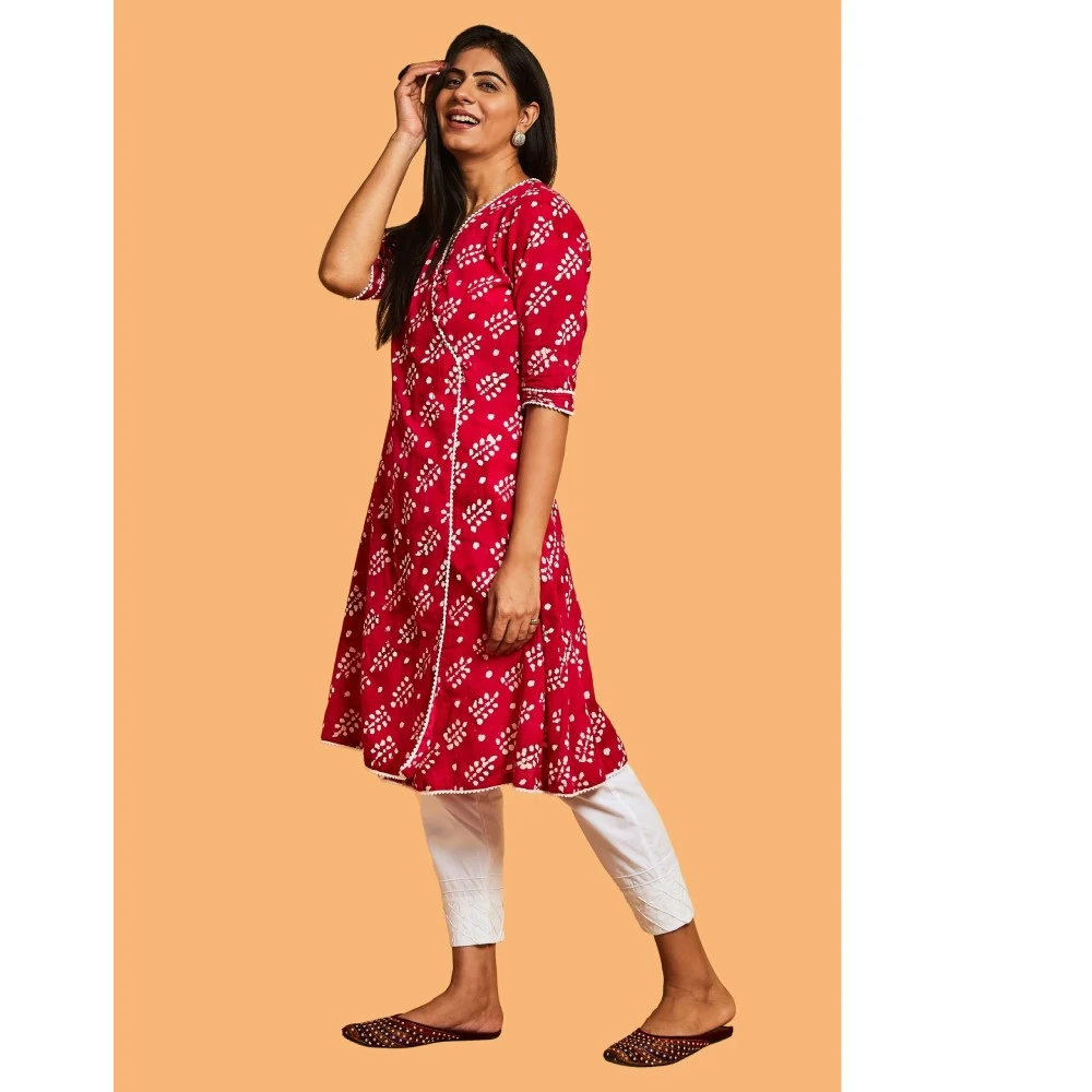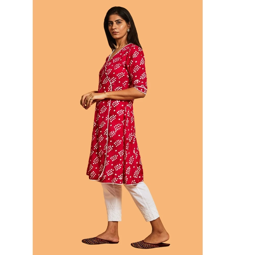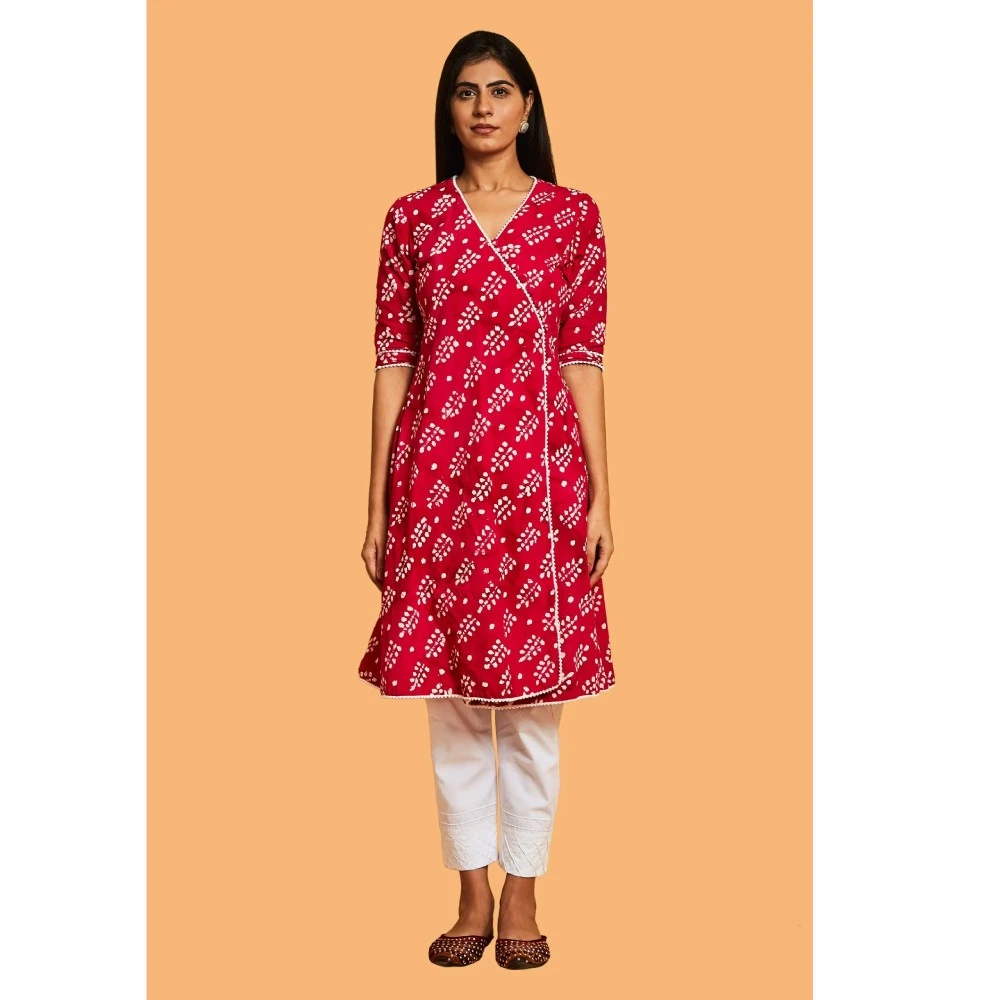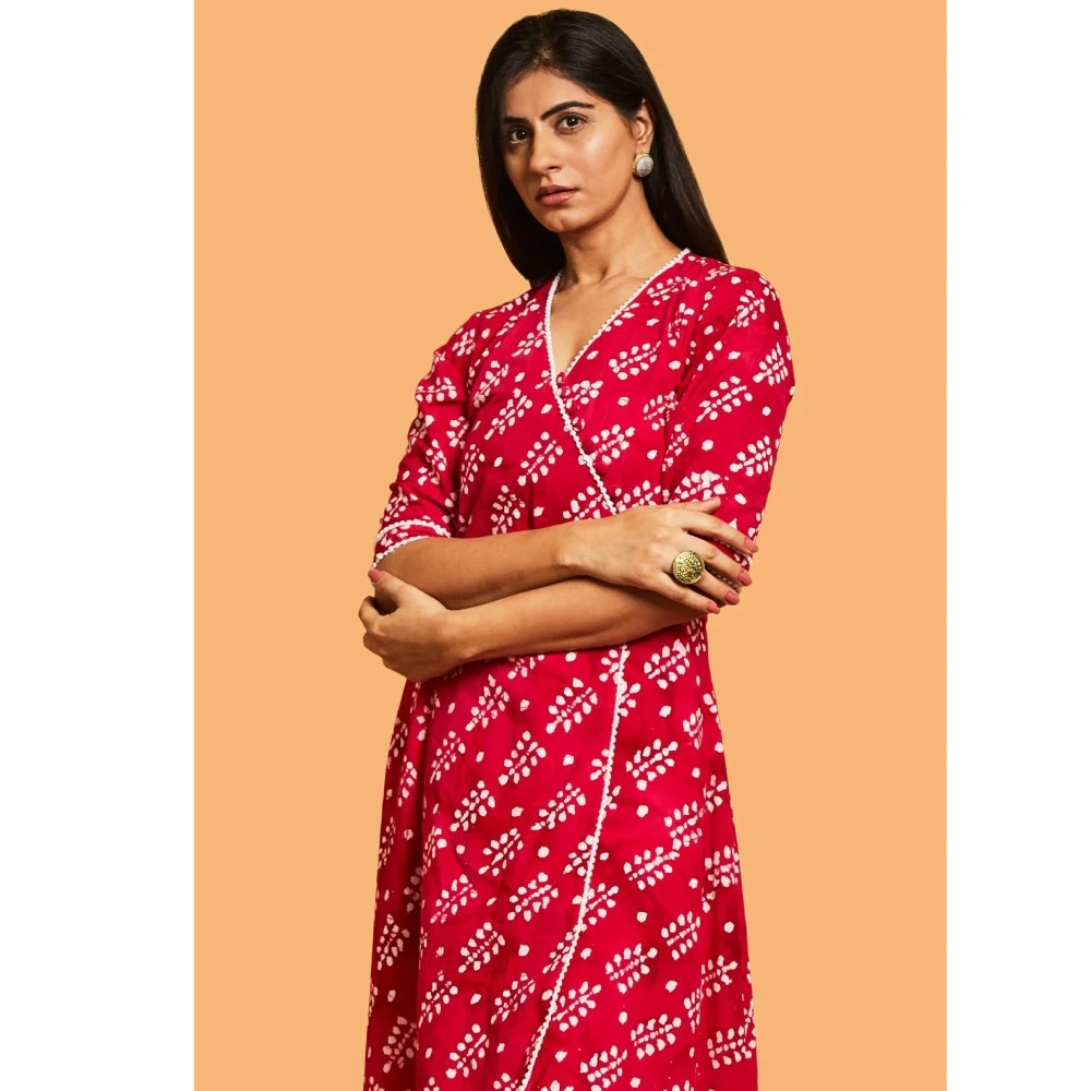 Indulge in the perfect blend of comfort and style with our Batik print Kurta Set. The charming pink and white kurta in this ensemble features a flattering V-neckline and playful three-fourth sleeves. Your unique style and the vibrant color combination are sure to make you stand out on any occasion. The white straight pants add a contemporary touch to the traditional silhouette, creating an ideal fusion of comfort and style. Step into any event wearing this ensemble and experience the admiration that comes your way.
