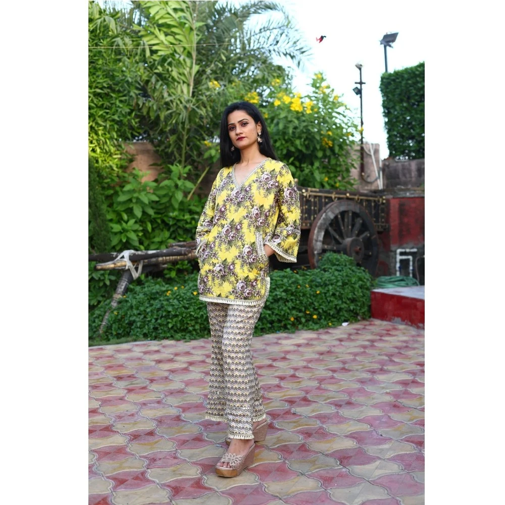 Radiate the charm of Lemon Yellow effortlessly with our Sunshine Citrine Co-Ord Set –