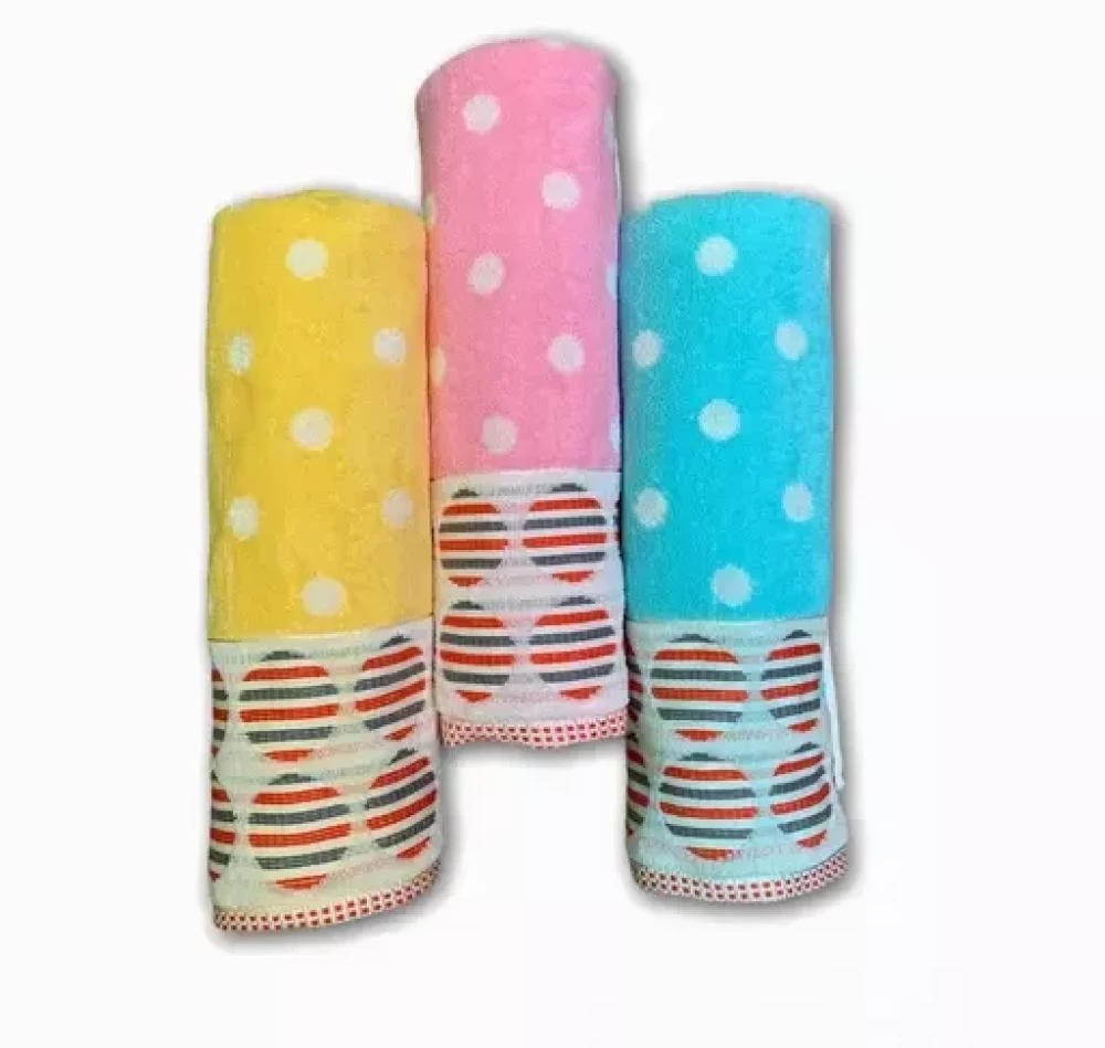 Design: Each towel showcases the Carnival Polka pattern in three distinct, beautiful colors, adding a vibrant touch to your bathroom decor.
