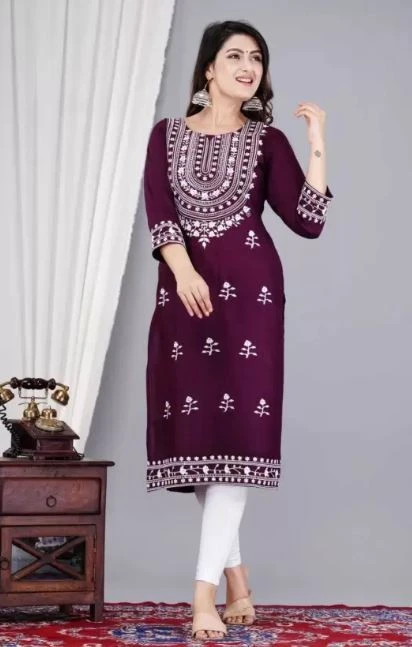 Crafted from premium Viscose Rayon fabric, this kurta ensures a comfortable and breathable fit, allowing you to move effortlessly throughout the day. The Round Neck design and 3/4 Sleeves provide a classic and versatile look, while the straight cut adds a contemporary flair to the overall style.