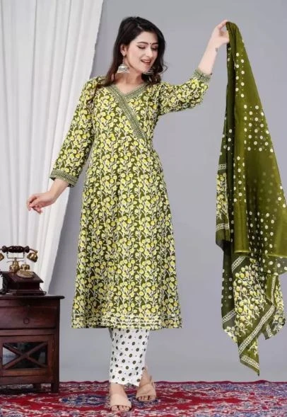ASAANZO KURTIES Women Kurta Pant Dupatta Set Green