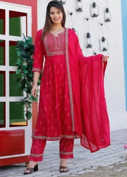 The set includes a tastefully designed Kurta paired with comfortable Pants, both crafted from the same premium Rayon fabric to ensure a coordinated and polished look. Complete your ensemble with the included Dupatta, adding a layer of grace that elevates the overall elegance of your outfit.