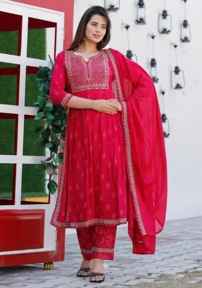 Introducing our opulent Viscose Rayon Kurta, Pant, and Dupatta Set, a celebration of elegance and style curated for your festive and party wardrobe. This enchanting ensemble, featuring the style code 0021, is designed to make you stand out at every special occasion.
