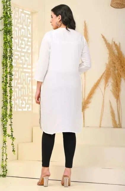 Designed without pockets for a clean and streamlined appearance, this Knee-Length Straight Kurta in White is a perfect embodiment of understated elegance. Whether you're meeting friends for a casual outing or enjoying a relaxed day, this kurta is a versatile choice for expressing your unique sense of style.