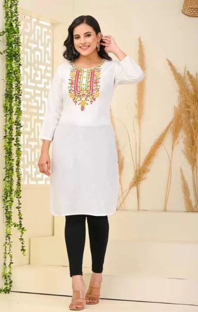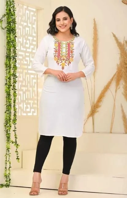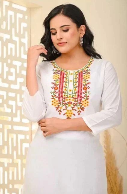 Introducing our elegant Knee-Length Straight Kurta, a timeless piece designed for the modern woman who appreciates the perfect fusion of comfort and style. Meticulously crafted with embroidered details, this kurta is the epitome of casual sophistication, suitable for a variety of occasions.