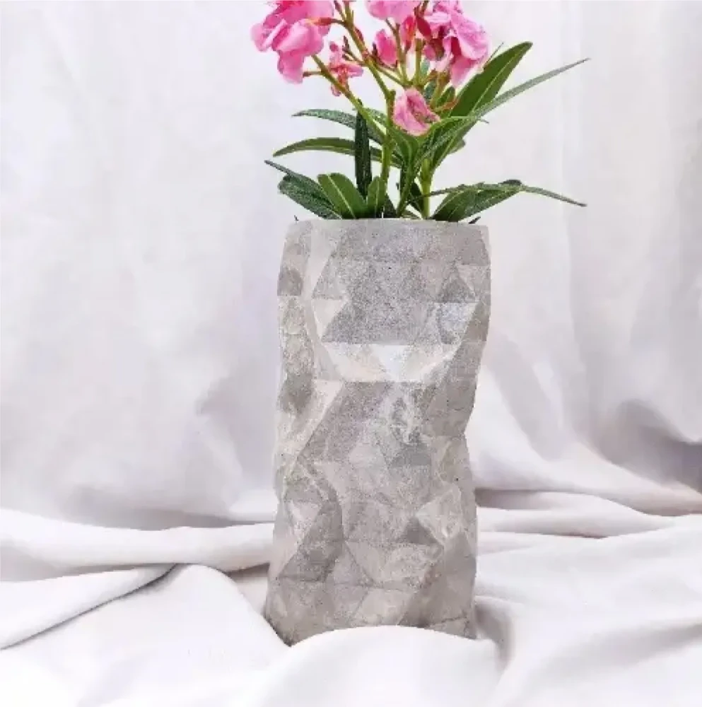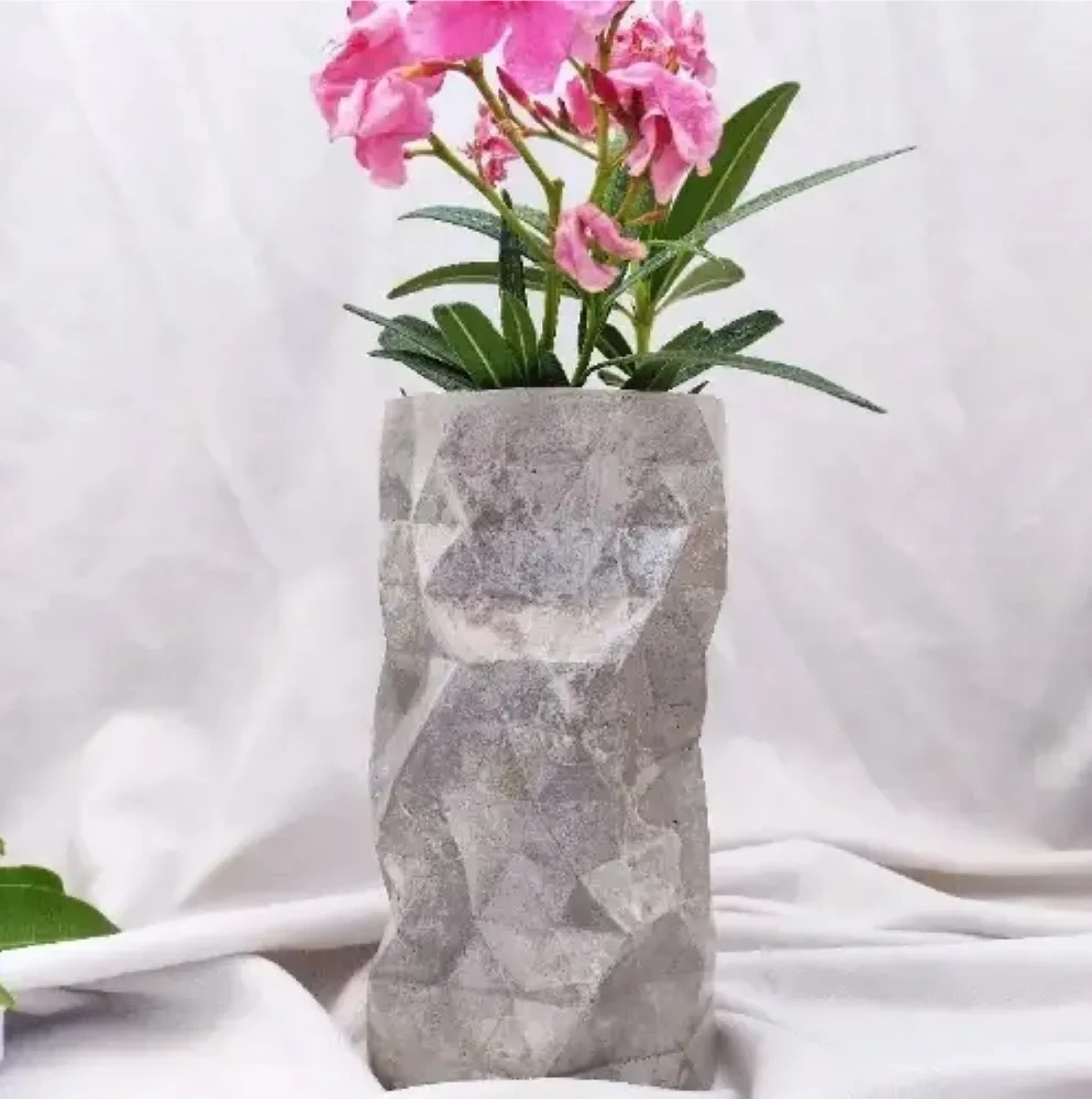 Presenting our Handcrafted Geometry Concrete Vase, a stunning fusion of modern design and artisanal craftsmanship. This vase features geometric patterns, meticulously molded from durable concrete. Each piece is unique, showcasing the raw beauty and texture of the material. Ideal for adding a contemporary, artistic touch to your home decor.