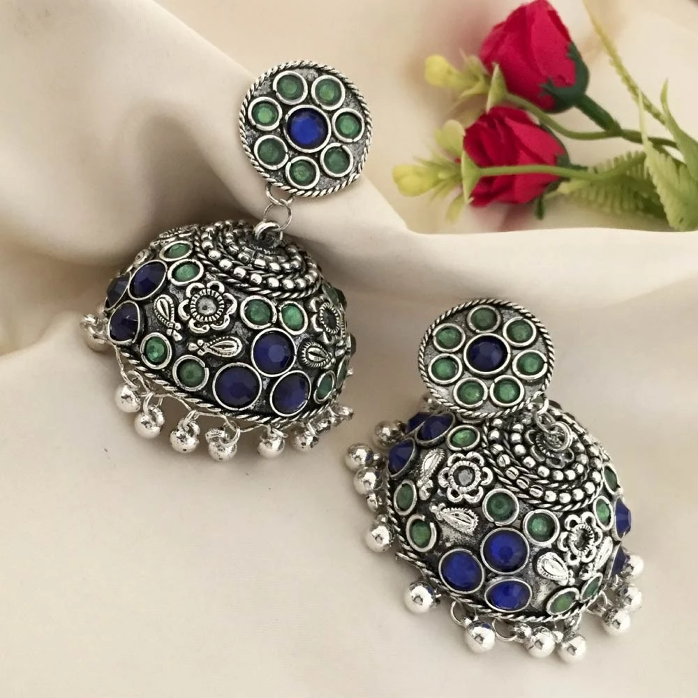 Premium Silver finish Oxidised Jhumka Earrings