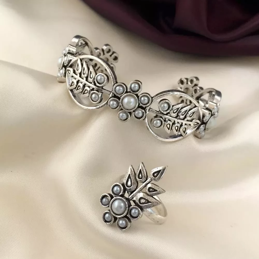 Silver Bracelet and Ring Combo Pearl