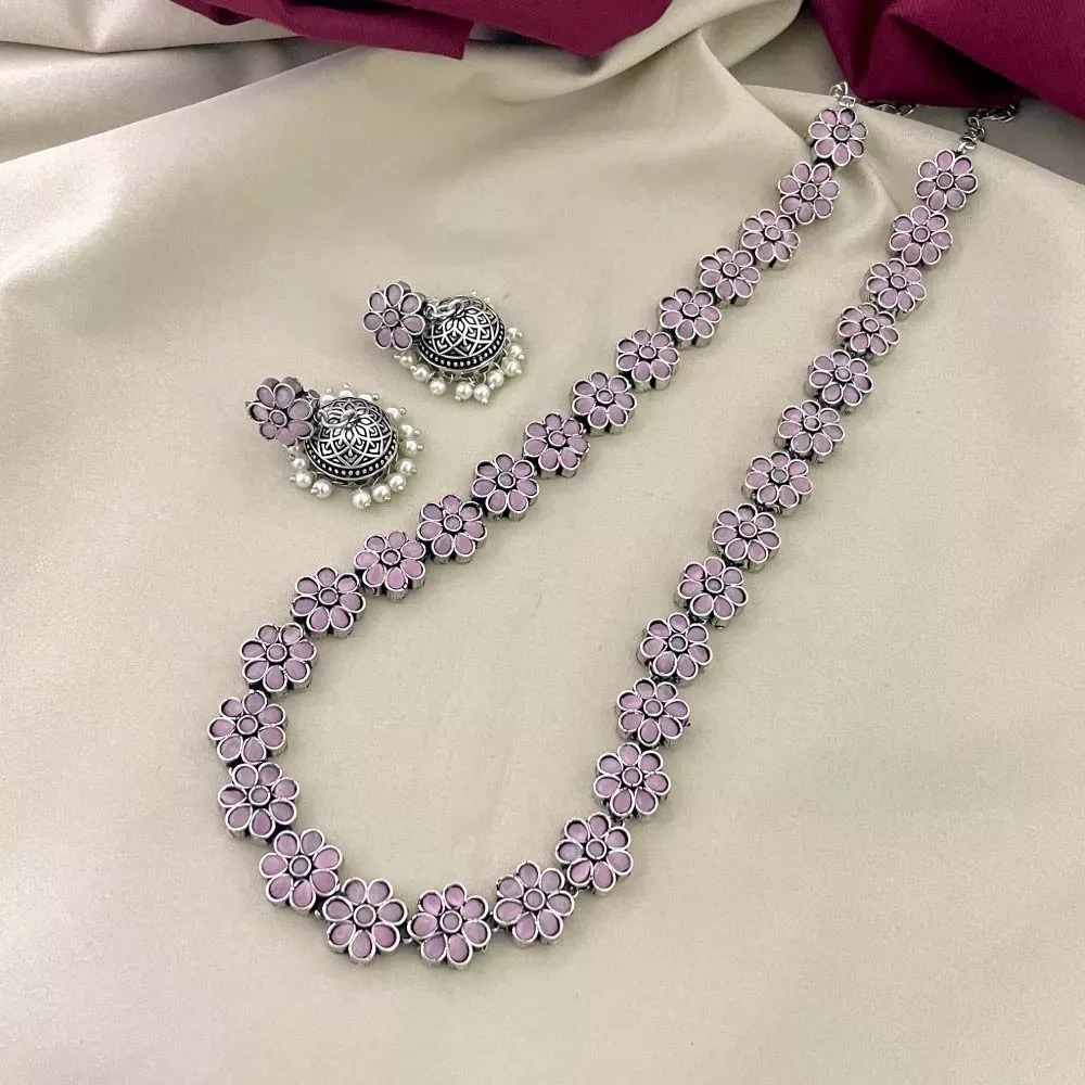 Silver Plated Flower Design Pink Haram