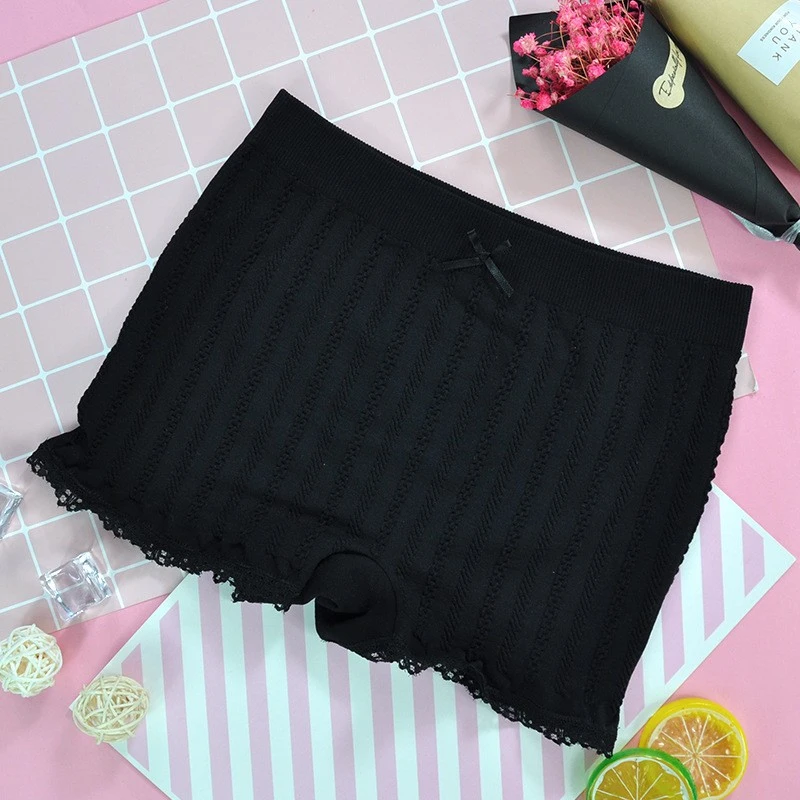 Female Underwear Lovely Panties Briefs Colorful Boxer Women Four Legged Leggings Wild Lace Twisted Safety Pants Black