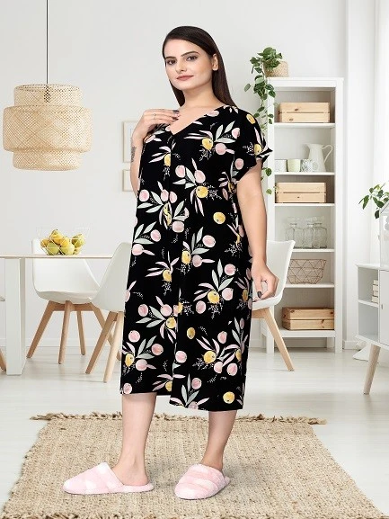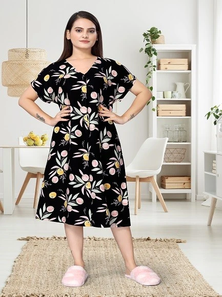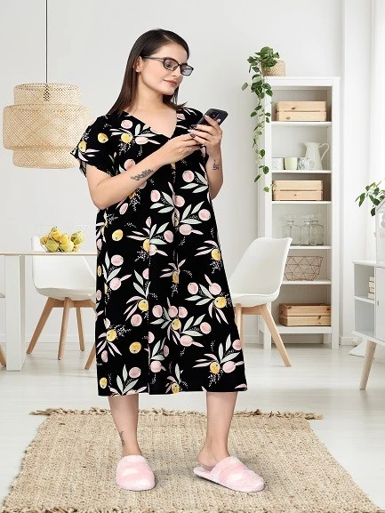 Introducing our Printed Nighty For Women in the timeless and elegant Black hue—a perfect combination of comfort and style to redefine your nighttime experience. Crafted from premium Viscose Rayon fabric, this nighty ensures a luxurious and gentle touch against your skin, promising a restful and tranquil sleep.