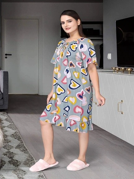 Designed for convenience, the Slip On closure ensures easy wear, making this nighty a hassle-free choice for your bedtime wardrobe. Whether you're unwinding after a long day or making a stylish statement in the comfort of your home, our Trendy Night Wear For Women with the style code "Printed Night Wear (Grey-3XL)" is the perfect solution.