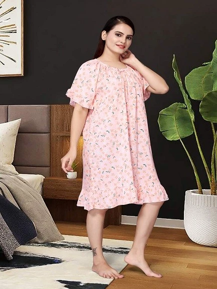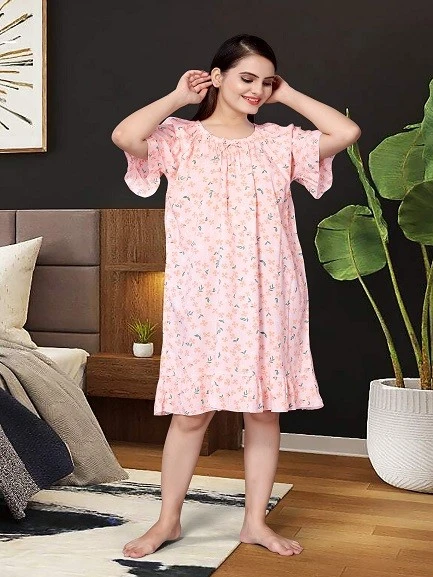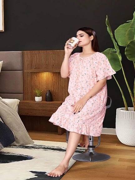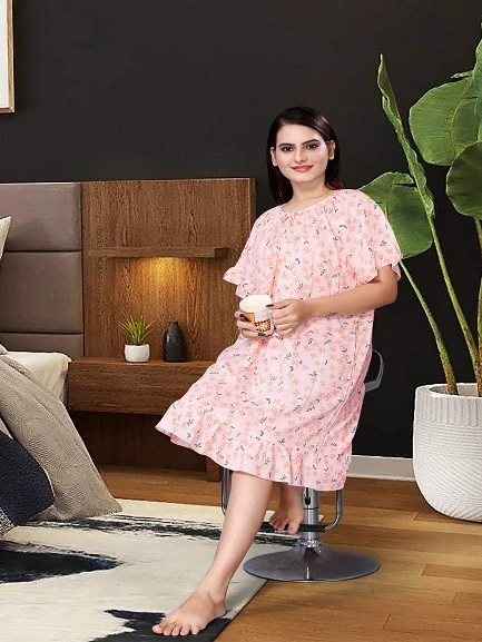 Designed for convenience, the Slip On closure ensures effortless wear, making this nighty a practical and hassle-free choice for your bedtime wardrobe. Whether you're unwinding after a busy day or looking to infuse style into your home comfort, our Trendy Night Wear For Women with the style code "Printed Night Wear" is the perfect solution.