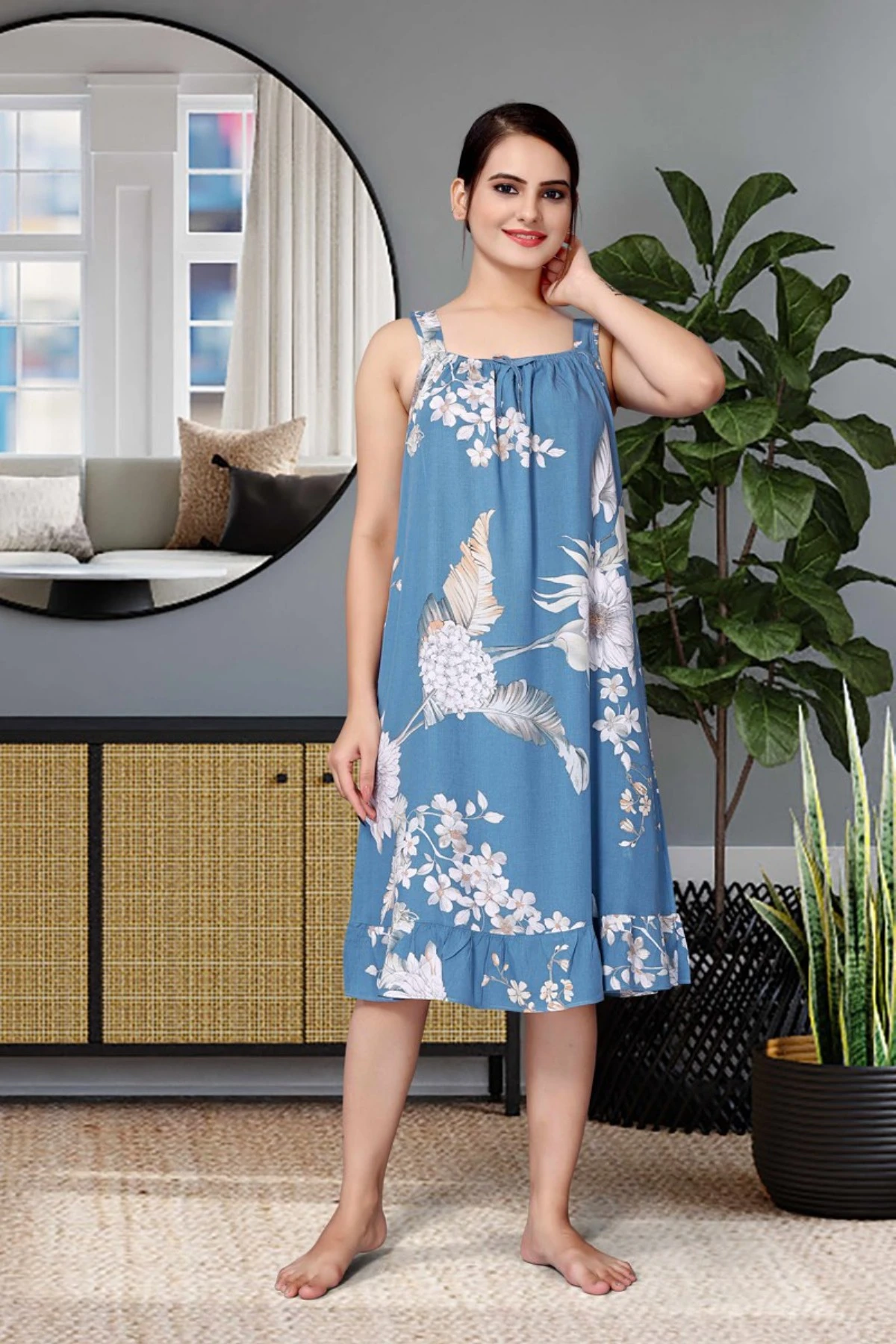 Viscose Rayon Womens Casual Dresses Summer Womens Fashion Casual Sleeveless Square Neck Print Casual night suit Blue