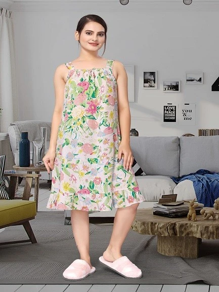 Elevate your nightwear collection with our Dress Party Wear-1 Printed Nighty, a perfect blend of style and comfort crafted for the modern woman. Let's delve into the details of this chic and comfortable nightwear: