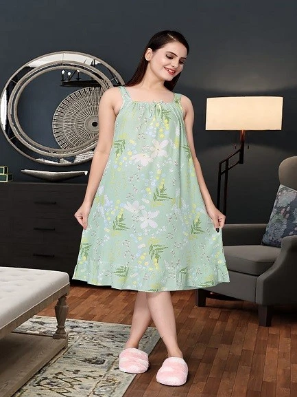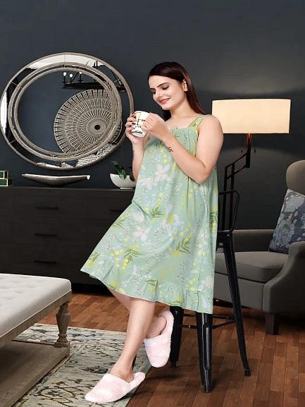 Introducing our Dress Party Wear-1 Printed Nighty, a perfect blend of style and comfort tailored for modern women. This Viscose Rayon nighty is meticulously crafted to provide you with the utmost comfort while keeping you in vogue. Here's a detailed overview of its key features: