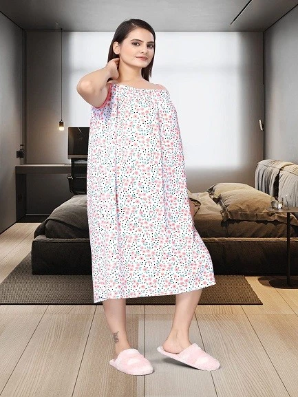 Designed for effortless wear, the Slip On closure ensures convenience, making this nighty a practical and hassle-free choice for your bedtime wardrobe. Whether you're unwinding after a hectic day or infusing style into your home comfort, our Trendy Design Night For Women with the style code "Printed Night For Women" is the perfect solution.