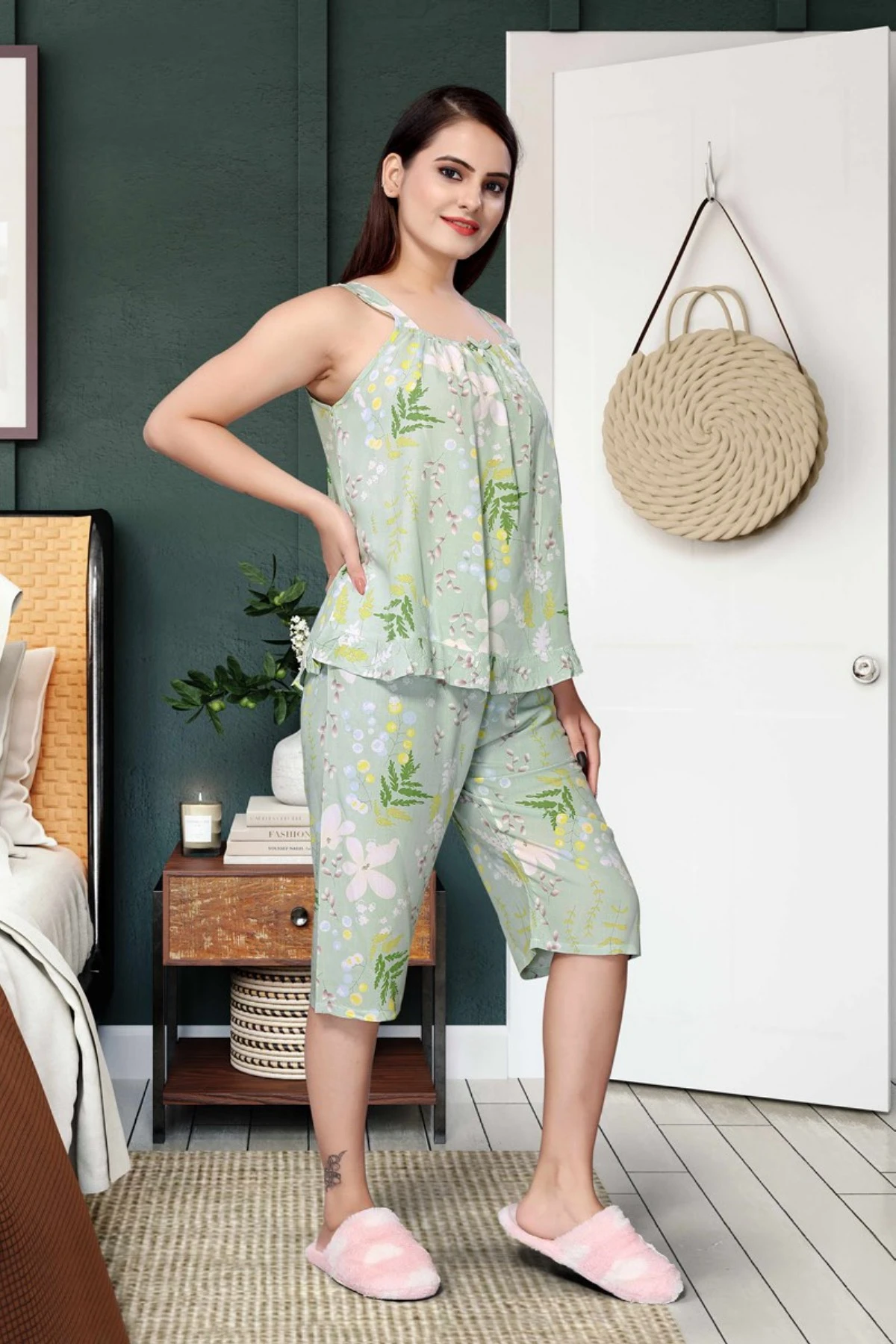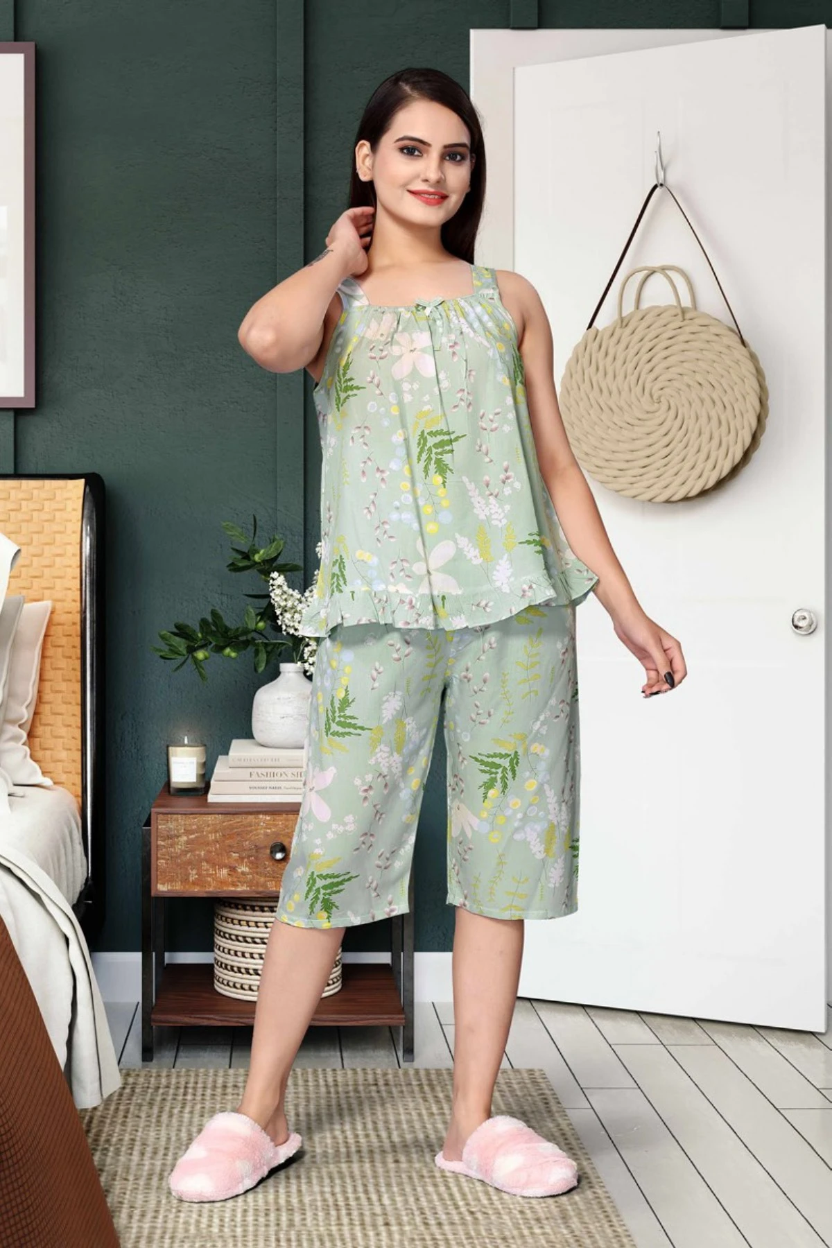 Introducing our captivating Green Night Set, a chic ensemble meticulously crafted to bring style and comfort to your nighttime routine. Immerse yourself in the luxurious feel of Viscose Rayon fabric, adorned with a trendy Printed pattern that adds a touch of sophistication to your Western Wear collection.