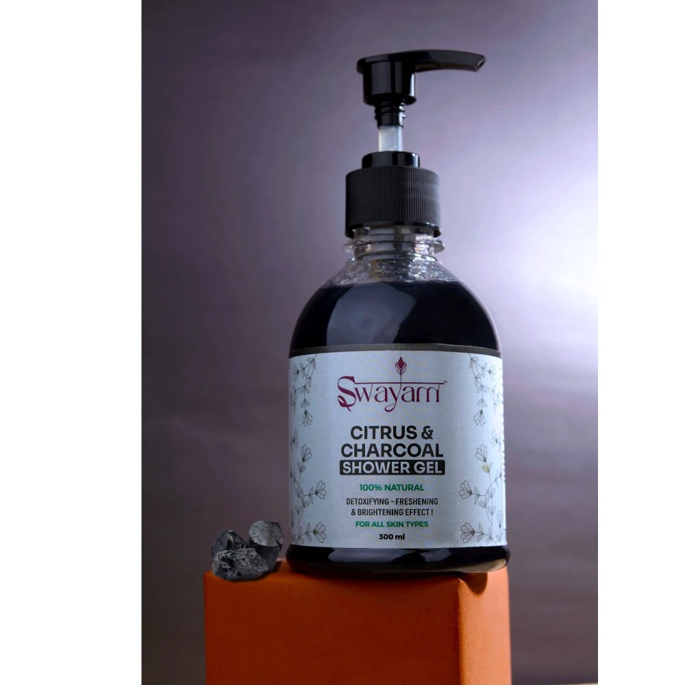Introducing Swayam's Citrus & Charcoal Shower Gel – your ultimate indulgence for a deep cleansing and freshening bath. Immerse yourself in an Ayurvedic beauty secret, elegantly packaged in a luxurious and moisturizing form, designed to provide a deeply detoxifying and refreshing experience.