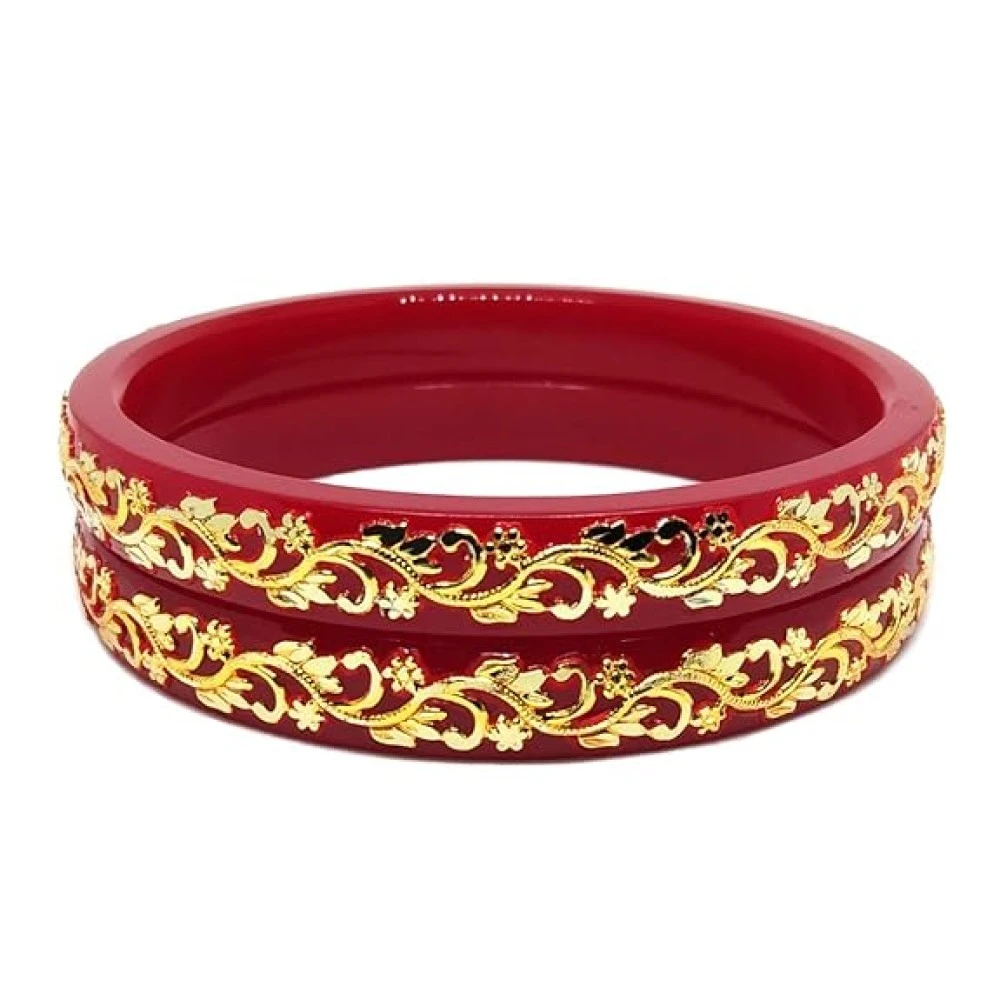 Made from high-quality acrylic material, these bangles are not only durable but also resilient, ensuring that they maintain their shape and beauty over time. The gold plating adds a touch of luxury, enhancing the overall appeal of the bangles.