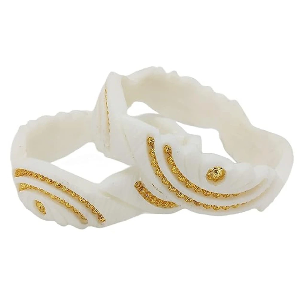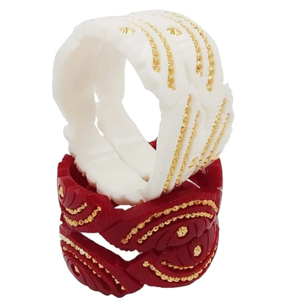 Tanvi J Gold Plated Bracelet Pola Bangles Pair of Two White and Red