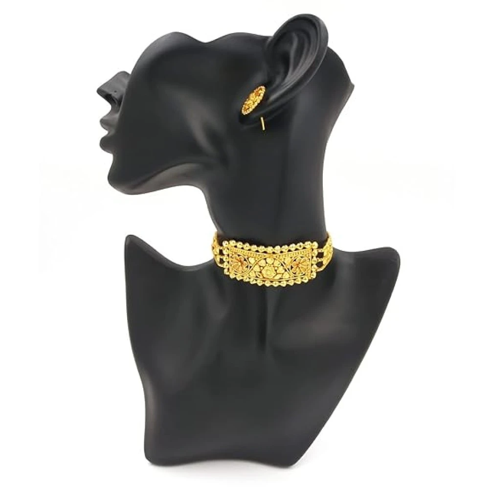 Tanvi J Gold Plated Choker Necklace with Earrings