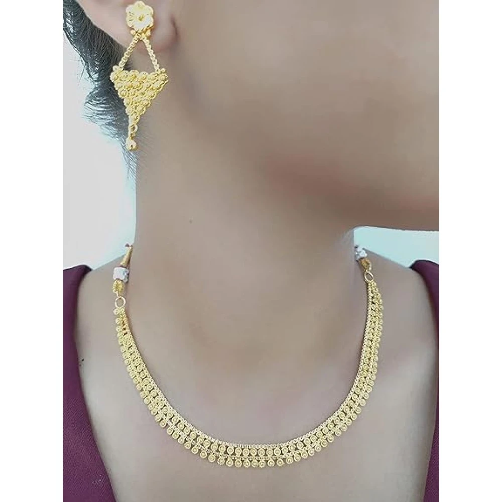 Introducing our Traditional Necklace Set for women, a timeless piece that epitomizes the perfection of original gold designing. Crafted with exquisite attention to detail, this necklace set is a versatile accessory suitable for various occasions, including weddings, festivals, casual wear, and traditional ceremonies.