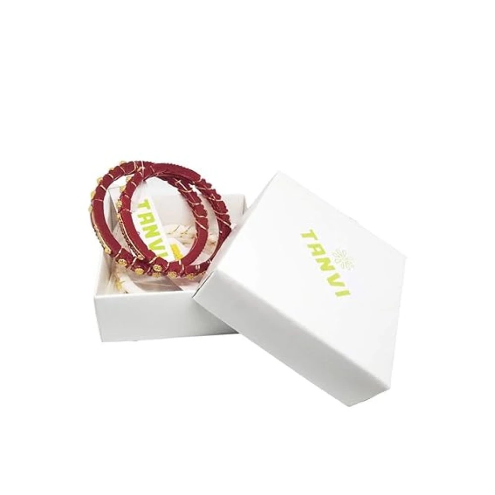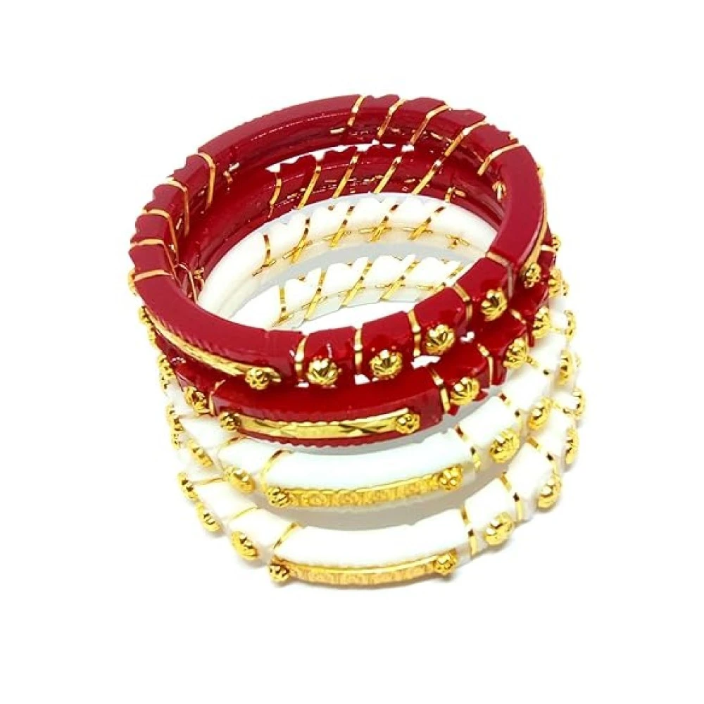 Tanvi J Plastic Gold Plated and Shakha Pola Bangle Set for Women Set of 4 Red and White